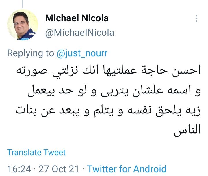 وتفاعل حساب آخر مع تغريدة الفتاة: أحسن حاجة عملتيها إنك نزلتي صورته واسمه؛ علشان يتربى، ولو حد بيعمل زيه؛ يلحق نفسه ويتلم، ويبعد عن بنات الناس.