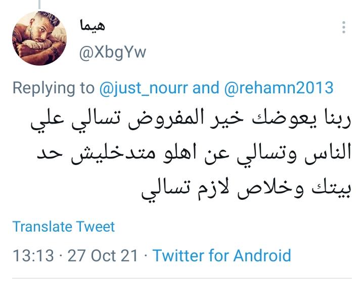وغرد مستخدم آخر: ربنا يعوضك خير، المفروض تسألي على الناس، وتسألي عن أهله، ماتدَّخليش حد بيتك وخلاص، لازم تسألي.