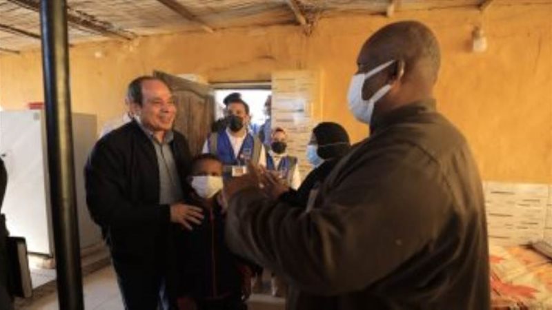 ثم استكمل الرئيس جولته بزيارة قرية الشهامة بوادي الصعايدة بأسوان، وهي إحدى قرى مبادرة تطوير قرى الريف المصري "حياة كريمة".