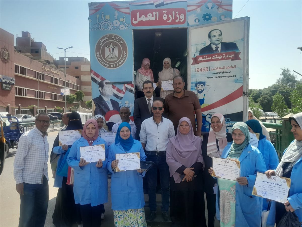 متابعة الدورة التدريبية لأعمال الخياطة بالوحدة المتنقلة في أبوتيج بأسيوط