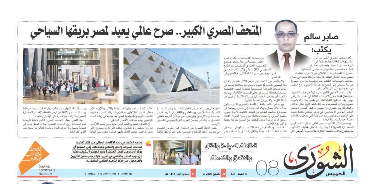 صابر سالم يكتب: المتحف المصري الكبير.. صرح عالمي يعيد لمصر بريقها السياحي