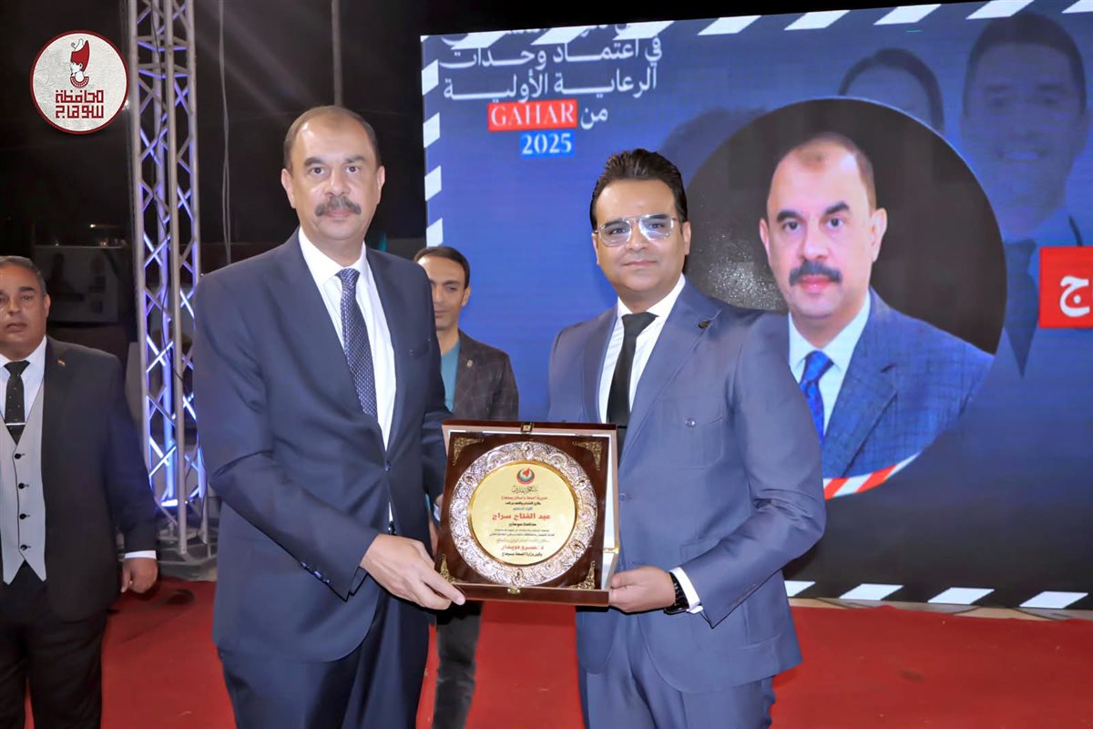 وفي ختام الحفل، تسلم محافظ سوهاج درع التكريم من وكيل وزارة الصحة تقديرًا لجهوده المخلصة وعطائه المتواصل لخدمة أبناء المحافظة، كما تم تكريم جميع العاملين بالوحدات التسع المعتمدة تقديرًا لتميزهم وجهودهم في الارتقاء بمستوى الخدمات الصحية.