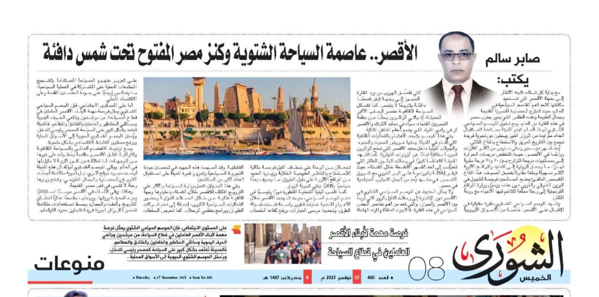 صابر سالم يكتب: الأقصر.. عاصمة السياحة الشتوية وكنز مصر المفتوح تحت شمس دافئة