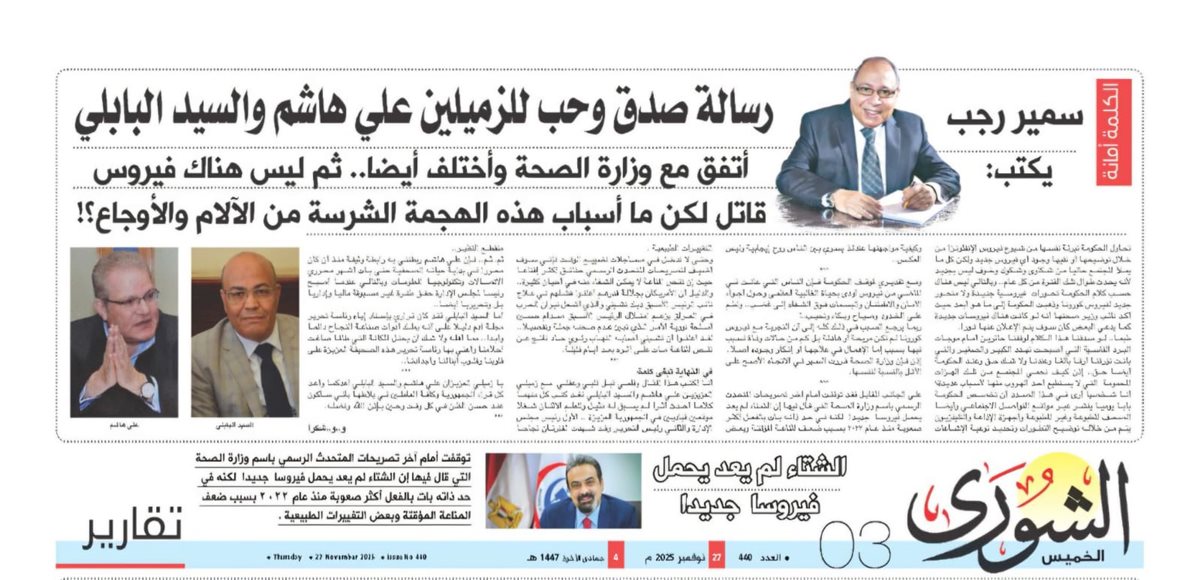 على الجانب المقابل فقد توقفت أمام آخر تصريحات المتحدث الرسمي باسم وزارة الصحة التي قال فيها إن الشتاء لم يعد يحمل فيروسا جديدا لكنه في حد ذاته بات بالفعل أكثر صعوبة منذ عام 2022 بسبب ضعف المناعة المؤقتة وبعض التغييرات الطبيعية .