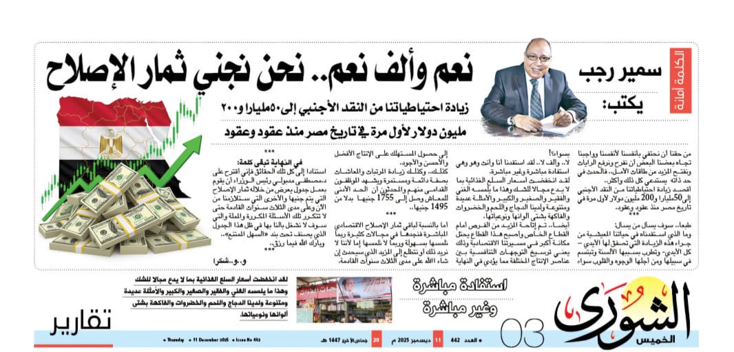 أقصد زيادة احتياطياتنا من النقد الأجنبي إلى50مليارا و200 مليون دولار لأول مرة في تاريخ مصر منذ عقود وعقود.
