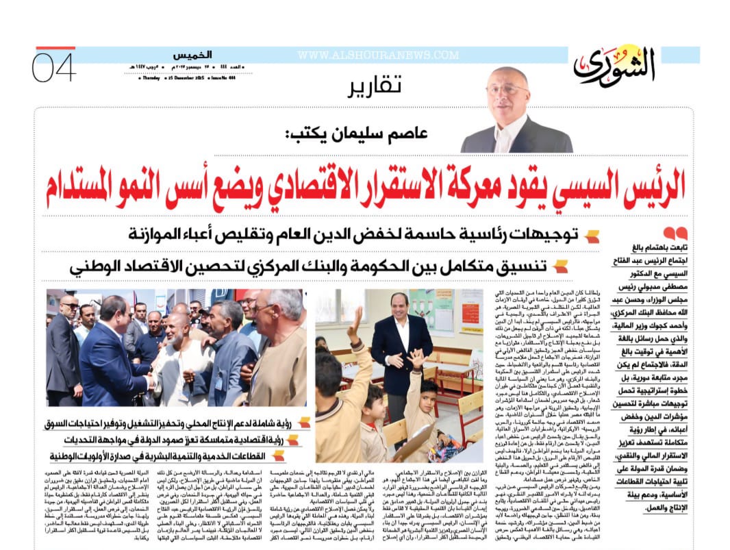 عاصم سليمان يكتب: الرئيس السيسي يقود معركة الاستقرار الاقتصادي ويضع أسس النمو المستدام