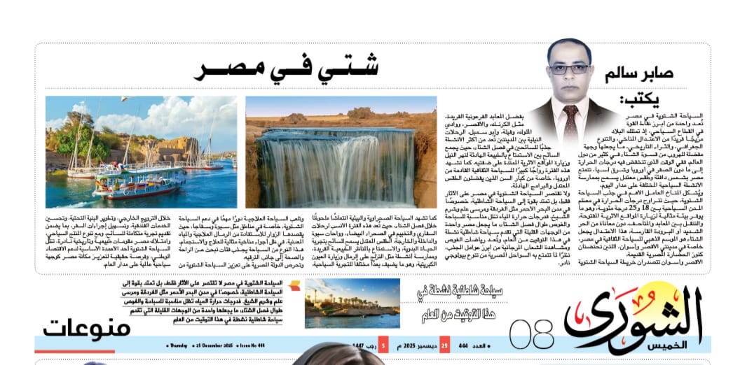 ومع تنوع المنتج السياحي، وامتلاك مصر مقومات طبيعية وتاريخية نادرة، تظل السياحة الشتوية أحد الأعمدة الأساسية لدعم الاقتصاد الوطني، وفرصة حقيقية لتعزيز مكانة مصر كوجهة سياحية عالمية على مدار العام.
