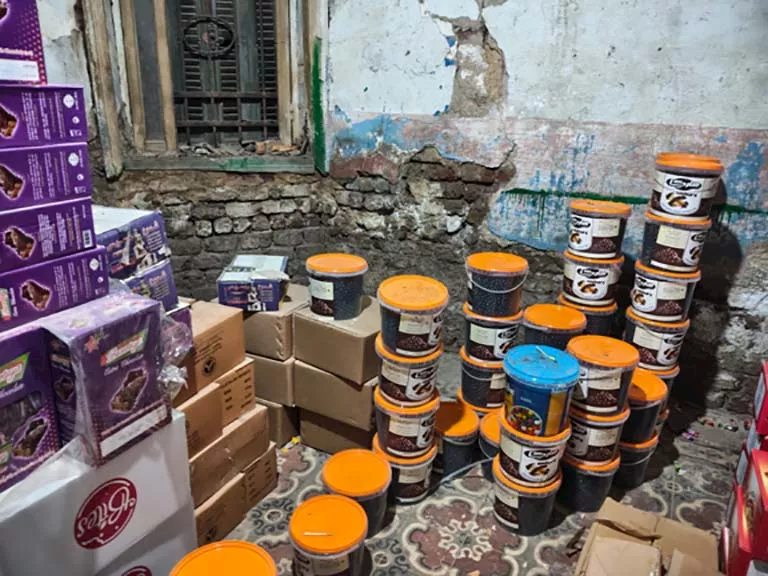 وأسفرت الحملة عن ضبط كميات كبيرة من المواد الغذائية، شملت: 83 جردل حلويات، 120 كرتونة شوكولاتة، وكميات من مواد غذائية متنوعة، وبفحص المضبوطات، تبين أنها منتهية الصلاحية ومجهولة المصدر، كما جرى ضبطها داخل مخزن غير مستوفٍ لاشتراطات السلامة والصحة المهنية، وغير صالح لتخزين المواد الغذائية، بما يشكل خطرًا مباشرًا على صحة المواطنين.
