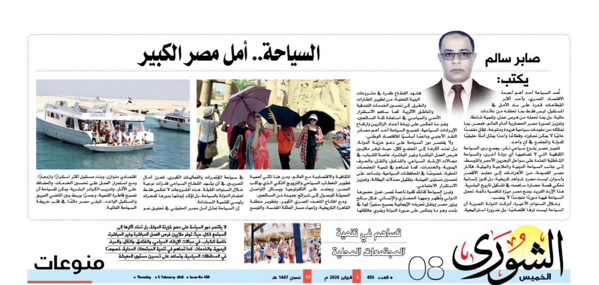 تُعد السياحة أحد أهم أعمدة الاقتصاد المصري، وأحد أكثر القطاعات قدرة على بث الأمل في المستقبل، ليس فقط بما تحققه من عائدات مالية، بل بما تحمله من فرص عمل، وتنمية شاملة، وتعزيز لصورة مصر الحضارية أمام العالم.