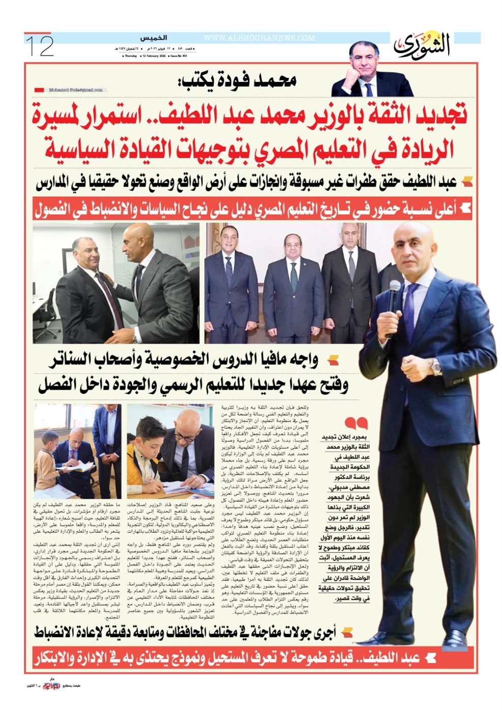 ولعل الإنجازات التى حققها عبد اللطيف والطفرات فى ملف التعليم لا تخطئها عين، لذلك كان تجديد الثقة به أمرا طبيعيا، فقد حقق أعلى نسبة حضور في تاريخ التعليم على مستوى الجمهورية في المؤسسات التعليمية، وهو رقم يعكس التزام الطلاب والمعلمين على حد سواء، ويشير إلى نجاح السياسات التي أعادت الانضباط للمدارس والفصول الدراسية.
