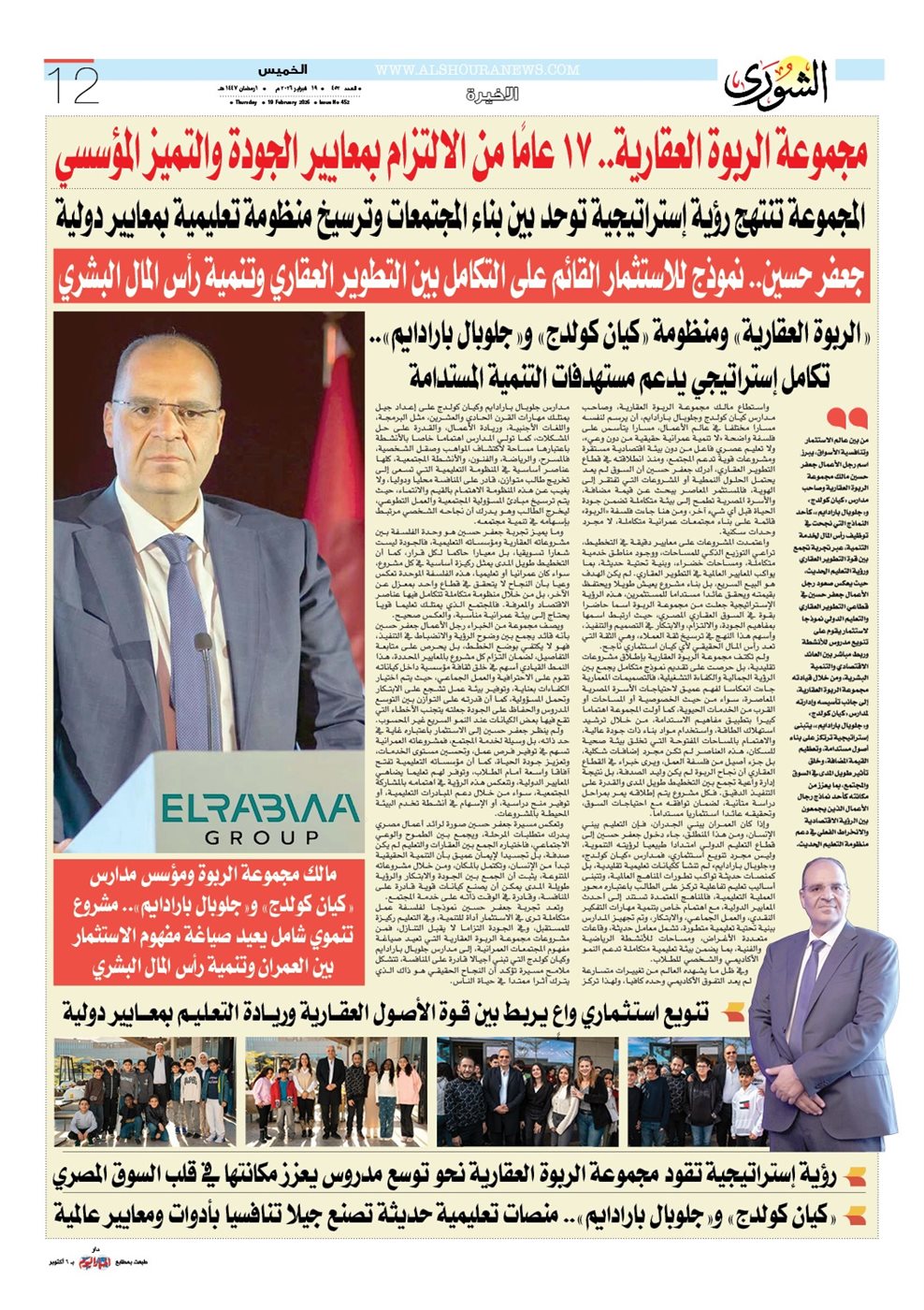- «الربوة العقارية» ومنظومة «كيان كولدج» و«جلوبال بارادايم».. تكامل إستراتيجي يدعم مستهدفات التنمية المستدامة