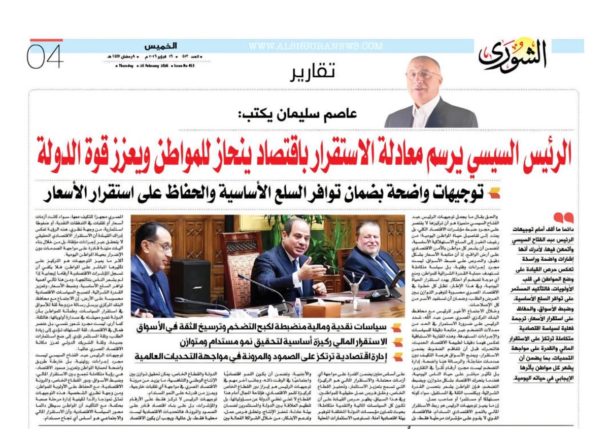 والحق يقال ما يجعل توجيهات الرئيس عبد الفتاح السيسي متميزة هو أن تركيزها لا يقتصر على مجرد ضبط مؤشرات الاقتصاد الكلي، بل يمتد إلى تفاصيل حياة المواطن اليومية؛ من رغيف الخبز إلى السلع الاستهلاكية الأساسية، لتضمن أن يشعر كل مواطن بالأمن الاقتصادي على أرض الواقع، إذ أن متابعة الأسعار بشكل دقيق، والحرص على ضبط الأسواق، ليست مجرد إجراءات وقتية، بل سياسة متكاملة تستهدف حماية القدرة الشرائية للمواطن، ومنع أي موجة تضخم أو احتكار يهدد استقرار الحياة اليومية، وفي هذا الإطار، تظل كل خطوة في الاقتصاد المصري محسوبة لتوفير التوازن بين العرض والطلب، وضمان أن تستفيد الأسر من كل الإصلاحات.