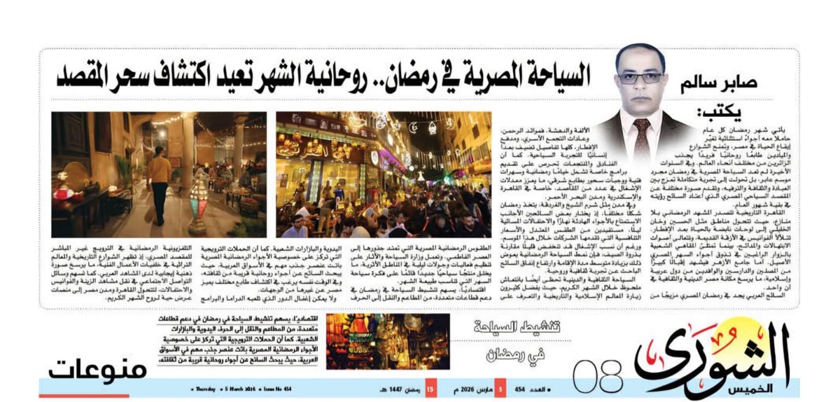 في المحصلة، لم يعد رمضان موسم ركود سياحي كما كان يُعتقد سابقًا، بل أصبح فرصة لإعادة تقديم مصر بصورة مختلفة، تجمع بين التاريخ والروحانية والدفء الإنساني. ومع تطوير البرامج الترويجية وتوسيع نطاق الفعاليات الثقافية، يمكن للسياحة المصرية في رمضان أن تتحول إلى علامة مميزة على خريطة المواسم السياحية، تعزز من تنوع المنتج السياحي وتؤكد أن مصر قادرة دائمًا على إدهاش زائريها، في كل وقت من العام، وخاصة في شهر تتجلى فيه روحها بأبهى صورها.