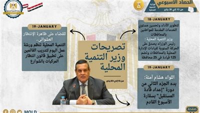 أصدر المركز الإعلامي التابع لوزارة التنمية المحلية الانفوجراف الأسبوعي في نسخته الثامنة عشر حول حصاد أهم ا