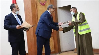 سلم محمد سعفان وزير القوى العاملة اليوم الإثنين بديوان عام الوزارة 1305 وثيقة تأمين ضد الحوادث الشخصية للع