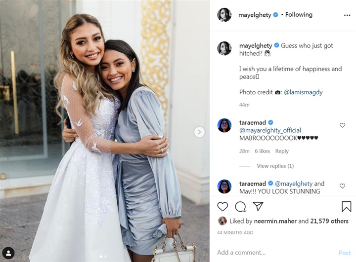 هنئت الفنانة مي الغيطي شقيقتها الفنانة ميار الغيطى بمناسبة كتب كتابها، عبر حسابها الشحصي على موقع التواصل الاجتماعي "إنستجرام" لتبادل الصور والفيديوهات.