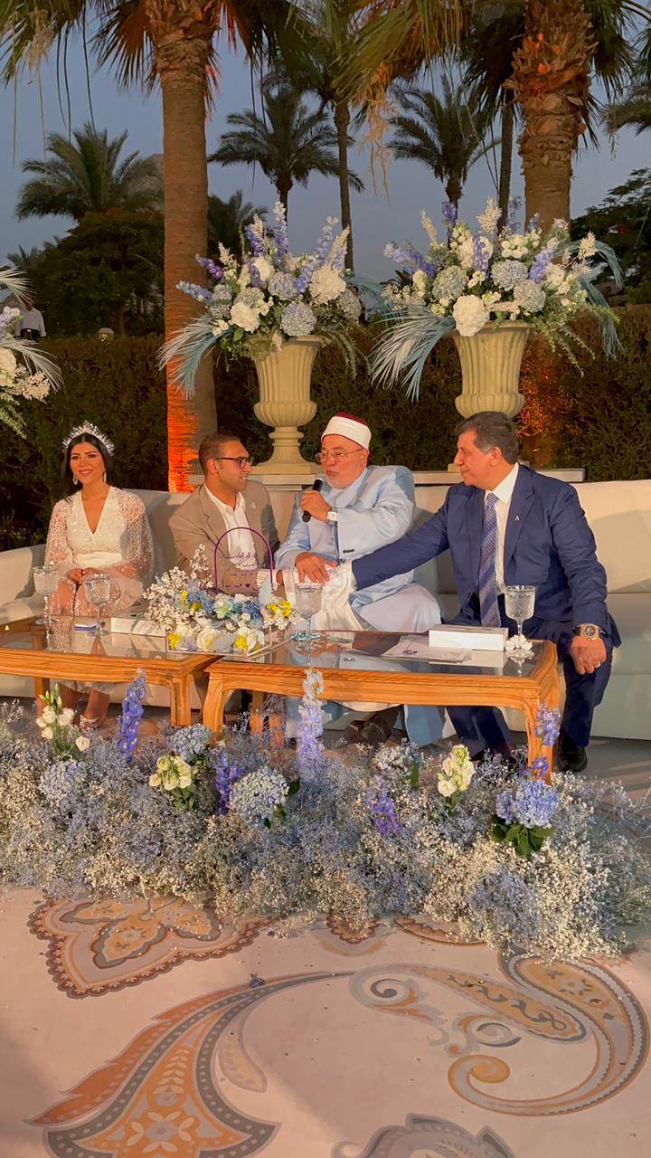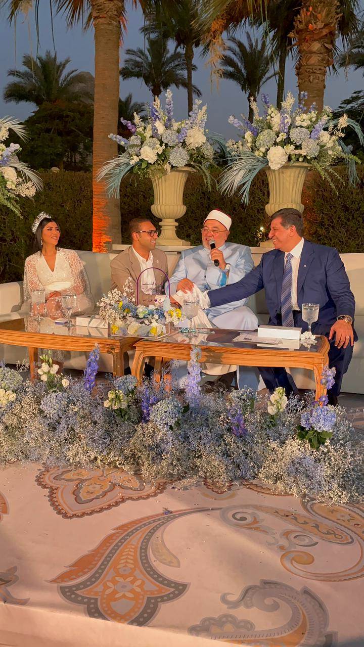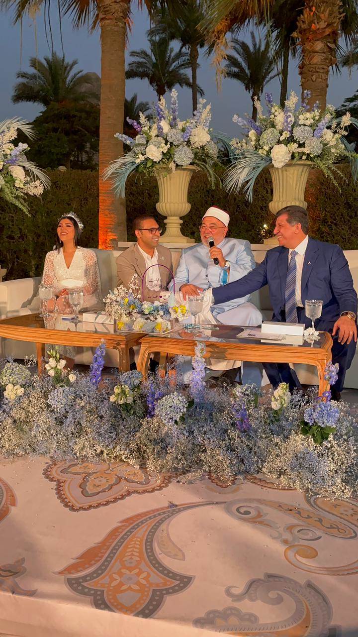 وقام الشيخ خالد الجندى بعقد قرآن "فرح" و"عبد الله"، وسط أجواء من السعادة والفرحة، ودعا للعروسين أن يديم الله بينهما الود والمحبة وأن يبارك لهما وعليهما ويجمع بينهما فى خير، ويرزقهما الذرية الصالحة التى تكون قرة عين لهما ويجعل الله أيامهما سعادة وسلاما وحبا وأمانا، وسط فرحة سادة جميع الحاضرين.