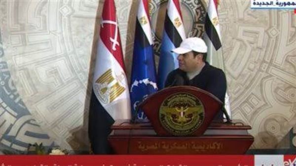 وقال الرئيس السيسي في كلمته على هامش الزيارة ، موجها حديثه لطلبة الكلية الحربية: "ربنا وفقنا في إزالة خطر كبير عن بلدنا خلال العشر سنوات الماضية ".