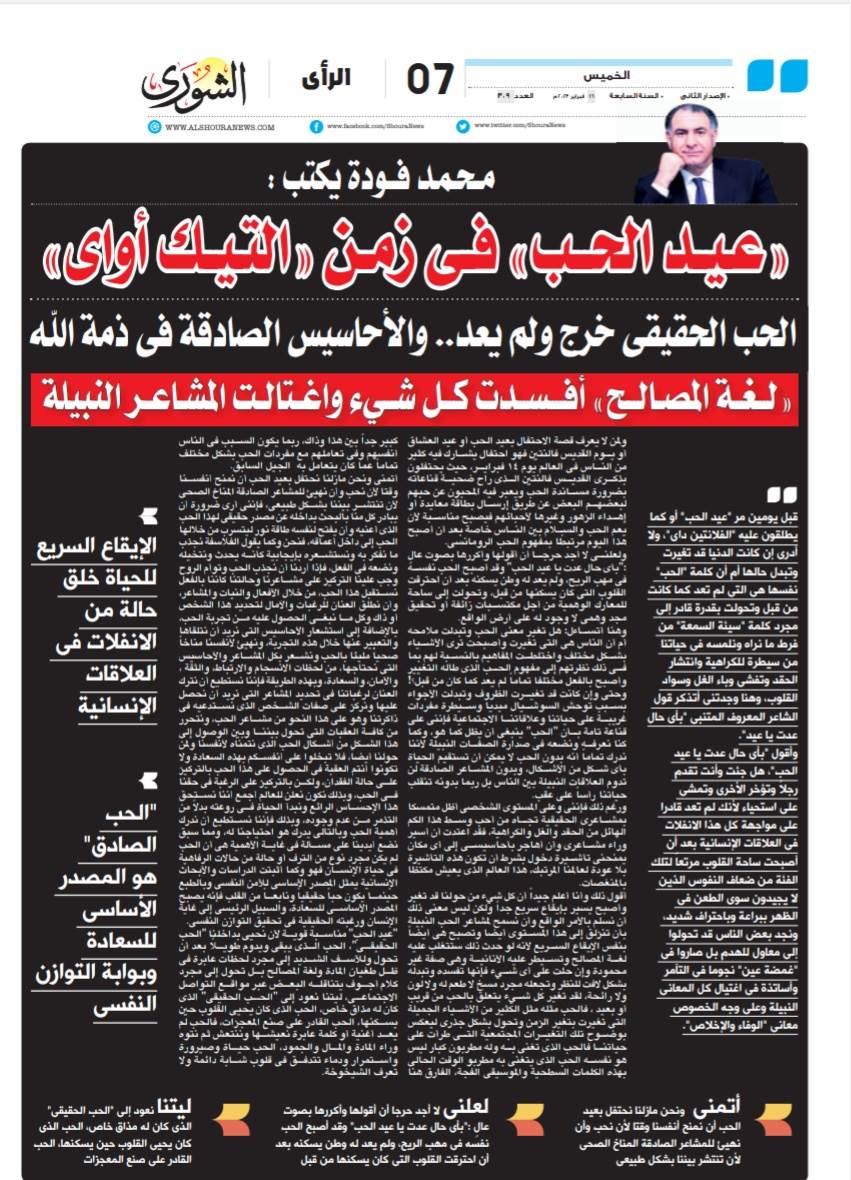 محمد فودة يكتب: "عيد الحب" فى زمن "التيك أواى"