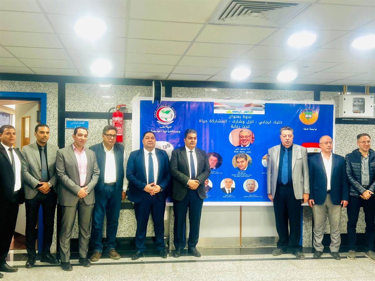 حاضر بالندوة الدكتور احمد غنيم عميد كلية الطب ، و تحدث عن ضرورة توعية الجميع بضرورة العمل وتنمية مهاراتهم لاعتماد الدولة على الكوادر الشبابية واطلاع الشباب بما توفره الدولة لهم من تأهيل وتمكين حقيقي لهم من خلال كل مؤسسات الدولة وحث الشباب بضرورة مشاركتهم في الانتخابات الرئاسية لتوصيل رسالة قوية للخارج بدورهم ووعيهم.