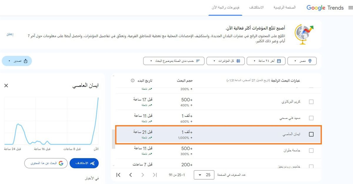 أميرة الدراما إيمان العاصي تتصدر تريند محرك البحث جوجل وتشعل مواقع التواصل الاجتماعى