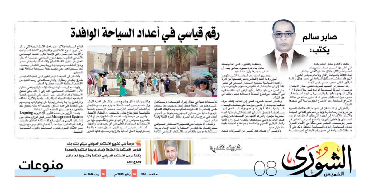 صابر سالم يكتب: رقم قياسي في أعداد السياحة الوافدة