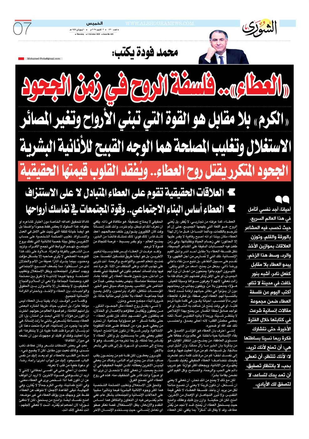 «العطاء».. فلسفة الروح في زمن الجحود