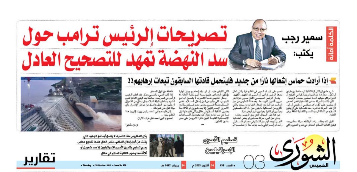إذا كان الشيء بالشيء يذكر فقد أعلن الرئيس ترامب في تصريحات ساخنة بعد توقيع اتفاقية شرم الشيخ بساعات قليلة أنه لا مجال بحالٍ من الأحوال أن يكون نهر النيل عاملًا من عوامل الإضرار بأي دولة تطل على شواطئه ..