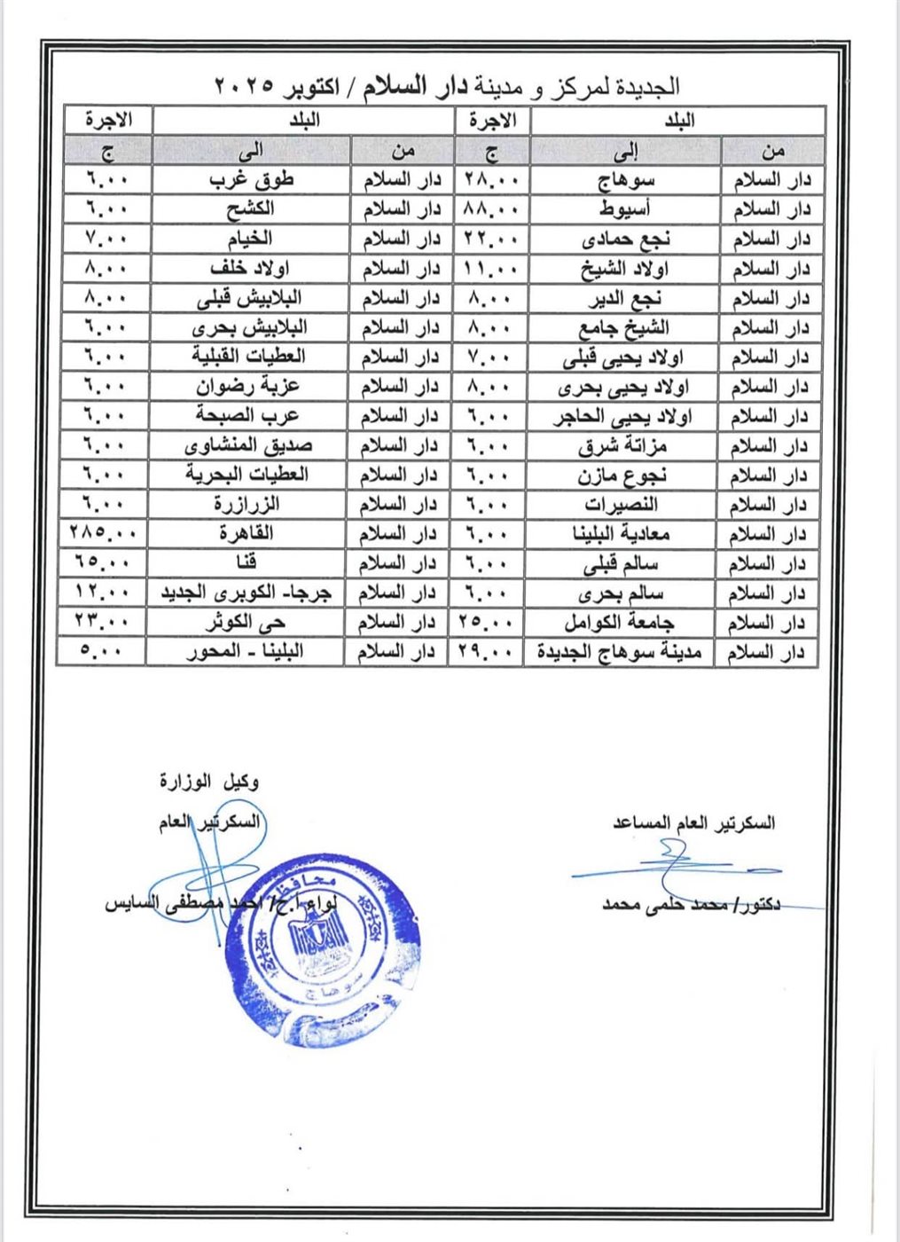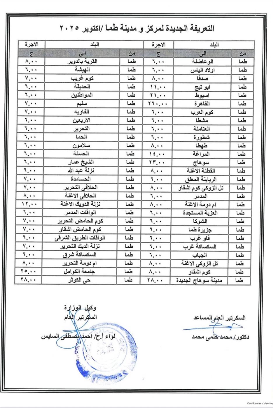 أصدر اللواء عبد الفتاح سراج، محافظ سوهاج، القرار رقم ٧٢٦ لسنة ٢٠٢٥، بشأن تعديل تعريفة الركوب لسيارات الأجرة العاملة بنطاق المحافظة، وذلك عقب اجتماع اللجنة العليا للإشراف على مشروع مواقف سيارات النقل الجماعي، الذي عُقد اليوم الجمعة الموافق ١٧ أكتوبر ٢٠٢٥.