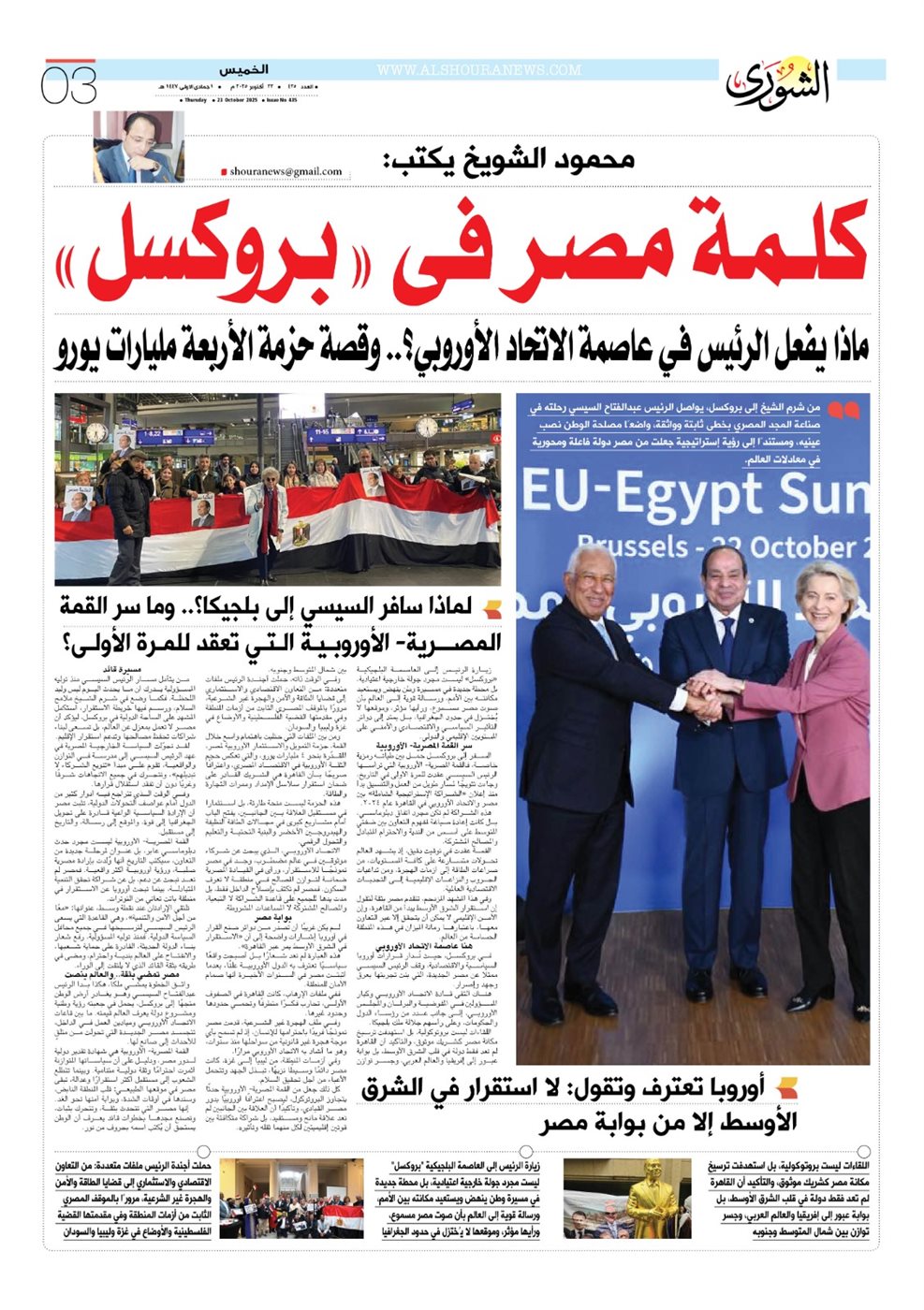 من شرم الشيخ إلى بروكسل، يواصل الرئيس عبدالفتاح السيسي رحلته في صناعة المجد المصري بخطى ثابتة وواثقة، واضعًا مصلحة الوطن نصب عينيه، ومستندًا إلى رؤية إستراتيجية جعلت من مصر دولة فاعلة ومحورية في معادلات العالم.