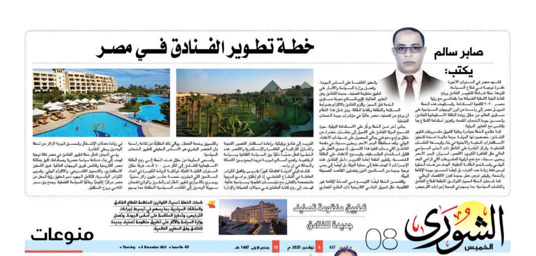 صابر سالم يكتب: خطة تطوير الفنادق في مصر