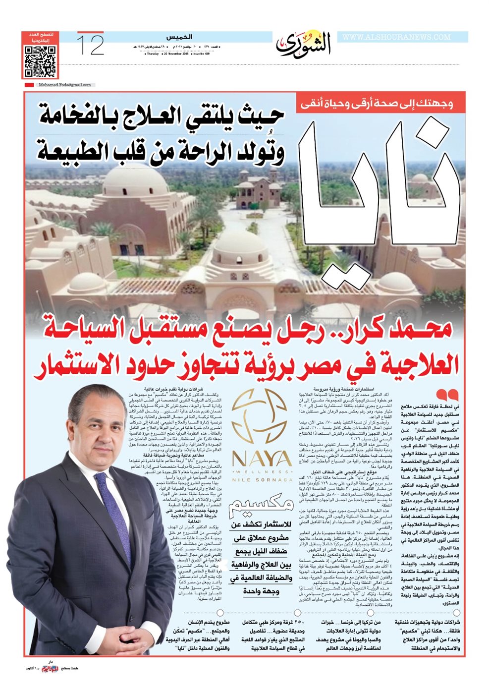 - «نـايـا ولنيس نايل سورناجا": المنتجع العلاجي الفاخر الذي يضع مصر على خريطة السياحة الصحية العالمية برؤية استثمارية تتجاوز 3.5 مليار جنيه