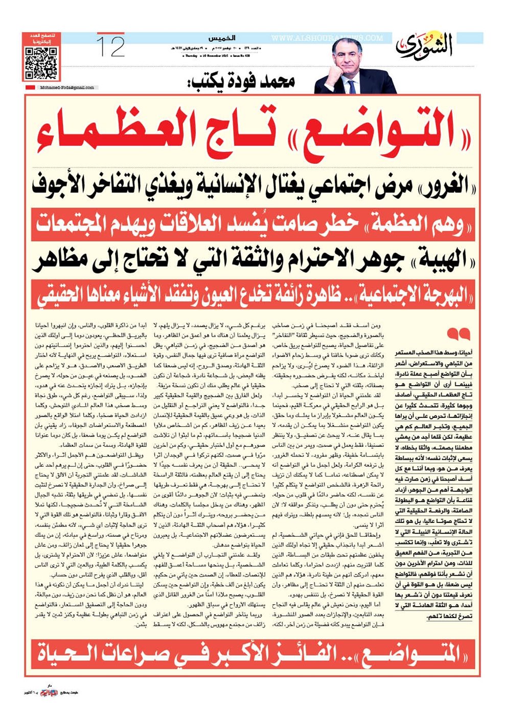 ومن أسف فقد أصبحنا في زمن صاخب بالصورة والضجيج، حيث تسيطر ثقافة "التفاخر" على تفاصيل الحياة، يصبح للتواضع بريق خاص، وكأنك ترى ضوءا خافتا في وسط زحام الأضواء الزائفة، هذا الضوء لا يصرخ ليُرى، ولا يزاحم ليأخذ مكانه، لكنه يفرض حضوره بحقيقته. بصفائه، بثقته التي لا تحتاج إلى صخب.