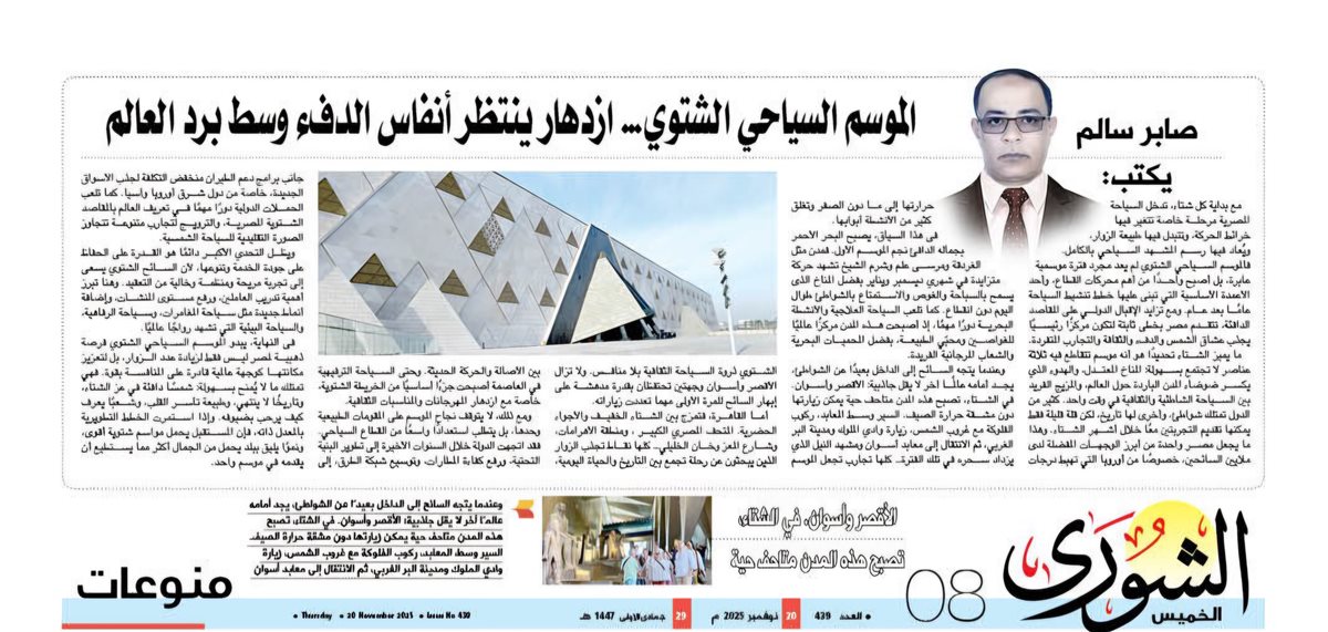 صابر سالم يكتب: الموسم السياحي الشتوي… ازدهار ينتظر أنفاس الدفء وسط برد العالم