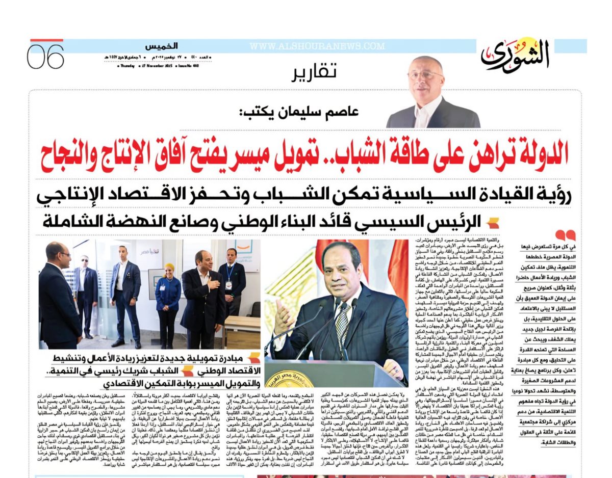 عاصم سليمان يكتب: الدولة تراهن على طاقة الشباب.. تمويل ميسر يفتح آفاق الإنتاج والنجاح