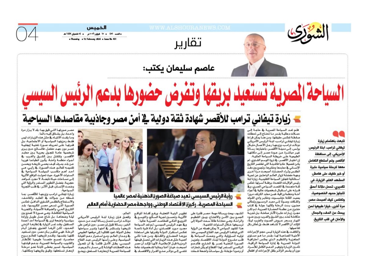 زيارة تيفاني ترامب وزوجها للأقصر، بما شملته من جولات في المعابد والمتاحف، والاستمتاع بالطقس الشتوي الدافئ، تعكس الصورة التي تسعى مصر لتكريسها: بلد التاريخ الحي، والضيافة الأصيلة، والتجربة السياحية المتكاملة، وهي صورة لا تصنع بين ليلة وضحاها، بل نتاج عمل طويل وإرادة سياسية واضحة ترى في السياحة أحد أعمدة المستقبل، وقد تمر الزيارة في إطارها الزمني المحدود، لكن أثرها المعنوي يتجاوز أيام الرحلة، فهي تذكير بأن مصر، حين تستعيد ثقتها بنفسها، وتقدم تاريخها للعالم بروح معاصرة، تصبح مقصدا طبيعيا للأنظار والقلوب، والسياحة المصرية، بدعم قيادتها السياسية، تسير بخطى ثابتة نحو مرحلة ازدهار تستحقها، وتليق بتاريخها ومكانتها.