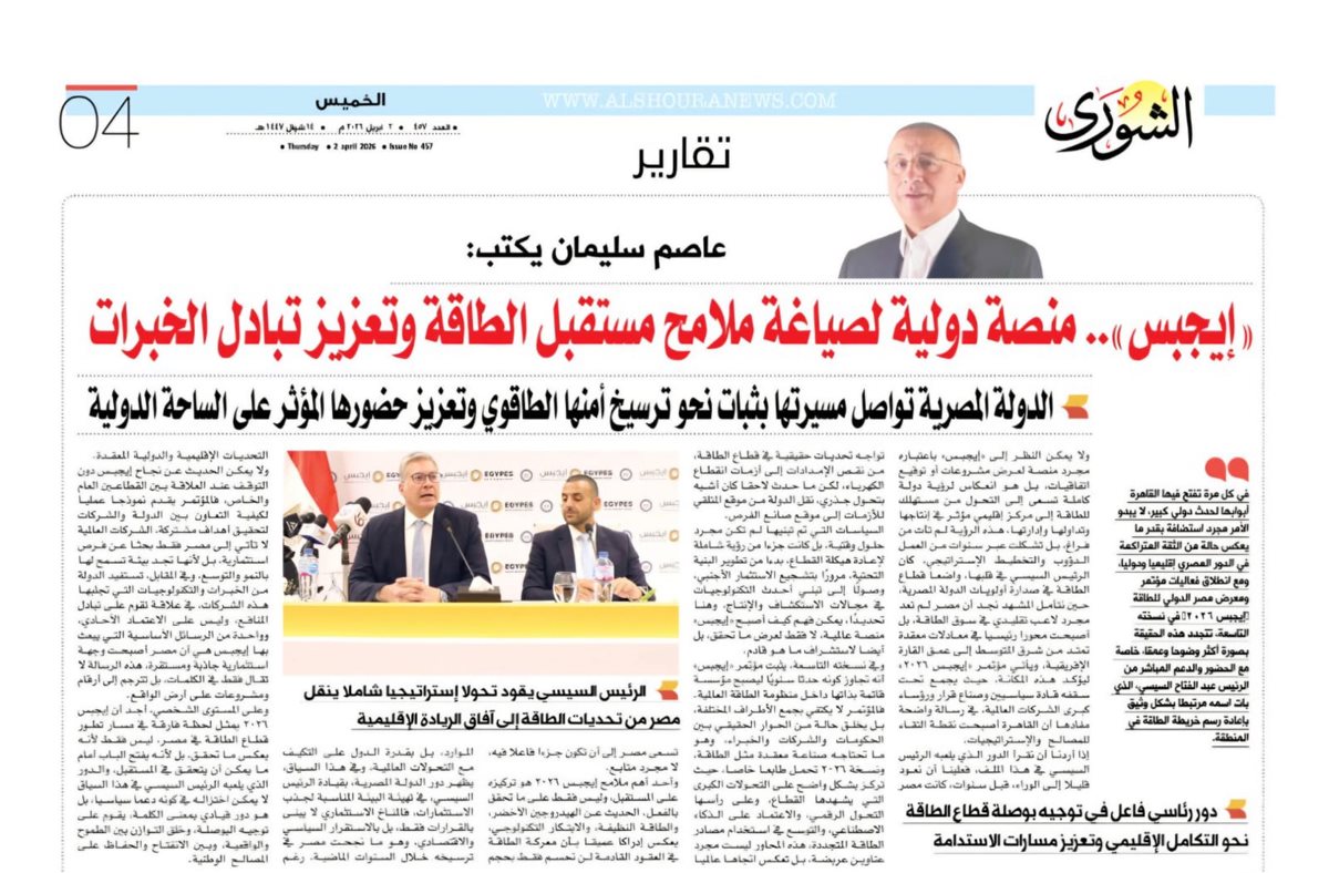 - الدولة المصرية تواصل مسيرتها بثبات نحو ترسيخ أمنها الطاقوي وتعزيز حضورها المؤثر على الساحة الدولية