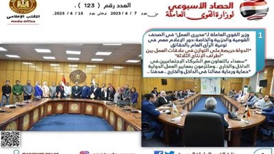 أصدرت وزارة القوى العاملة اليوم الجمعة إنفوجراف بشأن حصادها خلال الـ7 أيام الماضية والذي إنتهى بلقاءات موسع